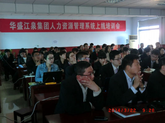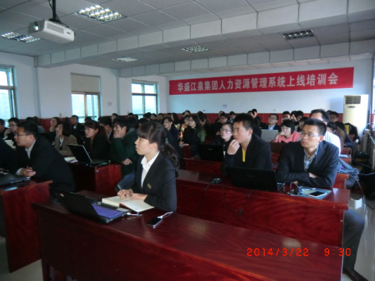 2014年3月22日上午9:00,華盛江泉集團人力資源管理系統(tǒng)薪酬管理模塊培訓(xùn)會在人社中心三樓舉行,參加培訓(xùn)會的有集團薪資專員、單位人事專員、用友HR項目組成員、江泉HR項目組成員共70余人。江泉方項目組代表申路平主持了本次培訓(xùn)。